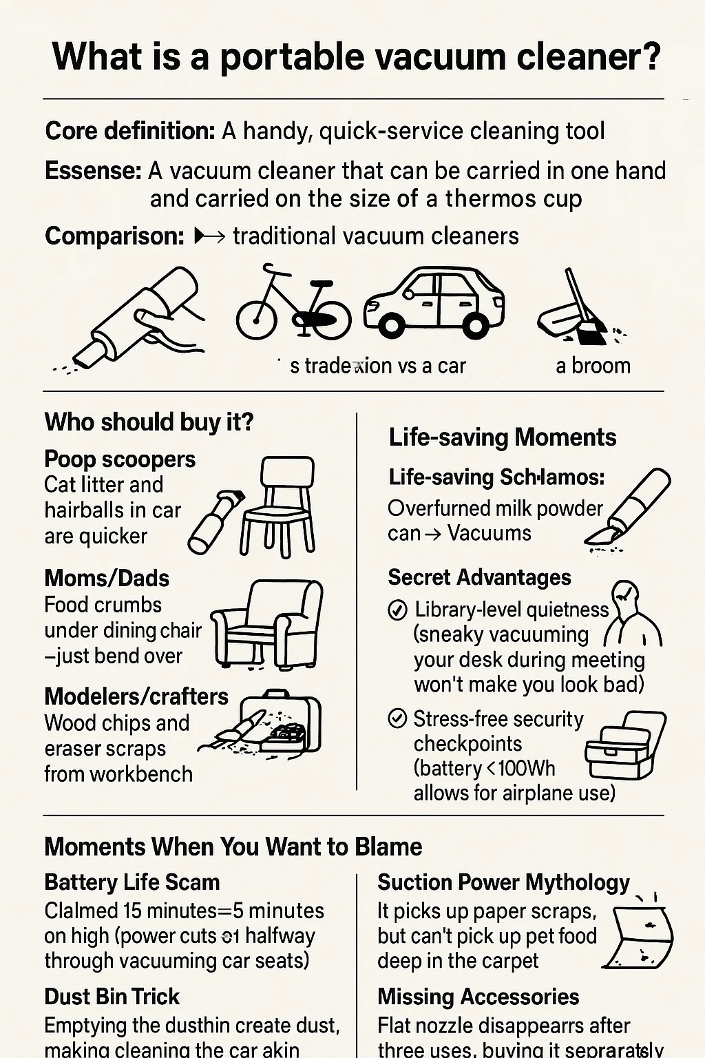 Összehasonlítás: ► A hagyományos porszívók: mint egy összecsukható kerékpár és egy autó, a teljesítmény feláldozása a végső hordozhatóság érdekében. ► Vs seprű: Ez a keksz morzsák nyertese a kanapé varrásaiban; Hasznos a padló nagy területeinek tisztításához.